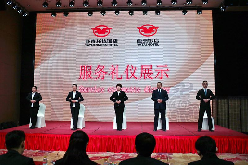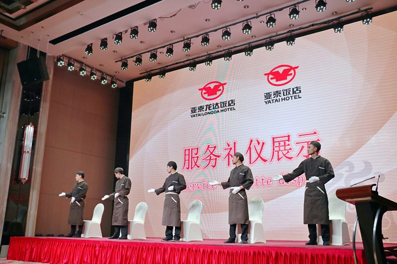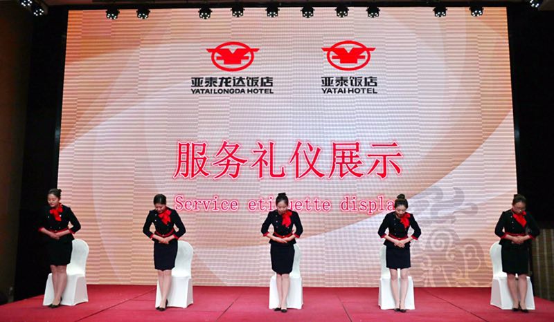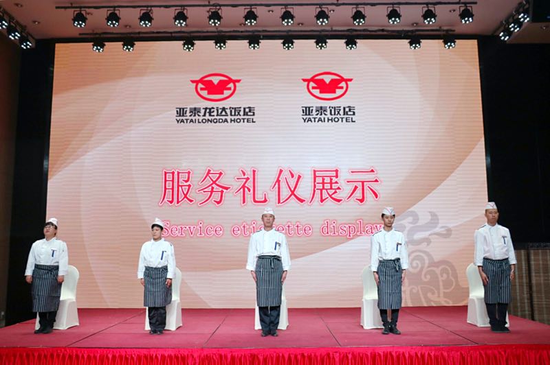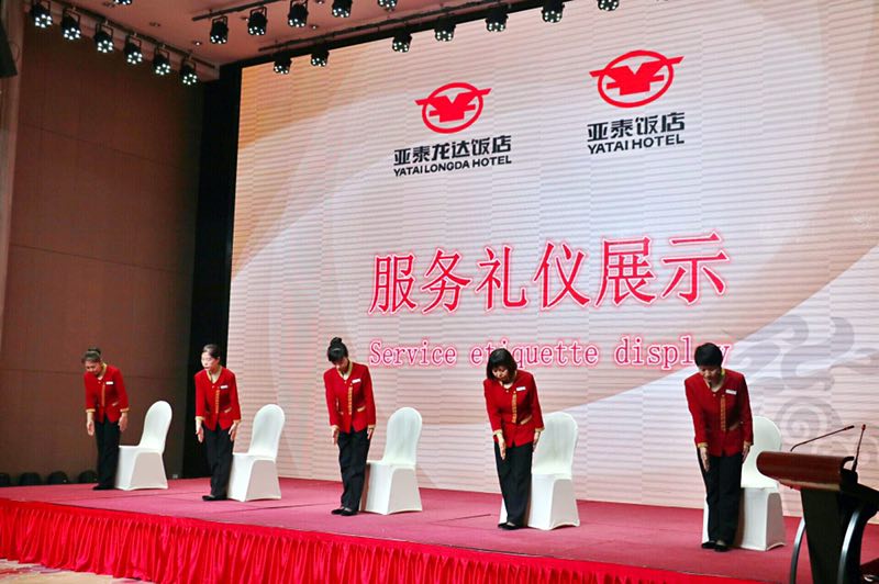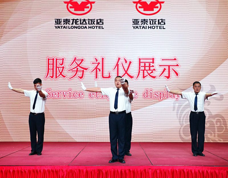 酒店的礼仪是一个历久弥新的话题,对于现代酒店行业,坚持标准化、高品质的礼仪是我们服务品质的体现。但坚持却是最难得的,我们亚泰龙达饭店自开业以来,每年举行一次礼仪展示比拼,旨在将高标准的服务贯穿在日常服务中。